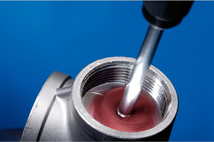 Produktbeschreibung:zum Reinigen, Entgraten und Feinschleifen von Innenflächen und Konturen für Materialien wie Edelstahl (INOX), Stahl, ALU/NE und anderen Werkstoffen geeignet · das Schleifvlies ist sternförmig in Lagen übereinander gelegt und im Zentrum miteinander verbunden · es ist speziell für enge Arbeitsbereiche wie Bohrungen und Vertiefungen und schwer zugängliche Stellen hervorragend einsetzbar