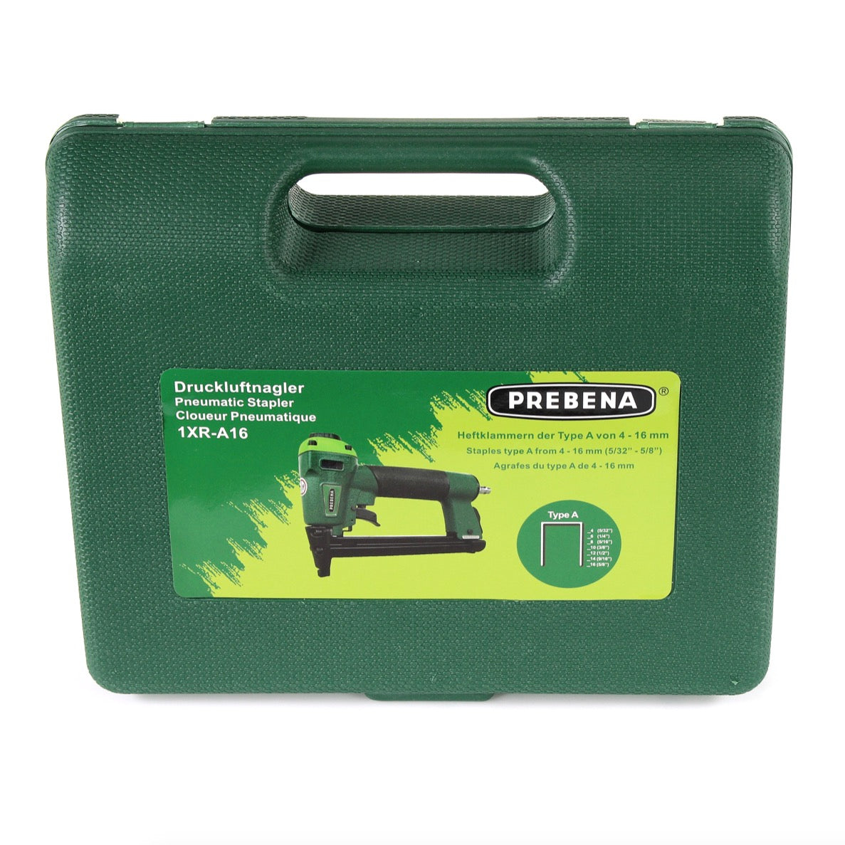 Prebena 1XR-A16 Luftdruck Druckluftnagler im Transportkoffer + A-BOX 9.000 Heftklammern / Staples