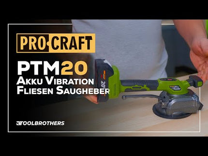 Procraft PTM20-1b-c Akku Vibration Fliesen Saugheber 20 V + 1x Akku 2,0 Ah + Ladegerät + Koffer