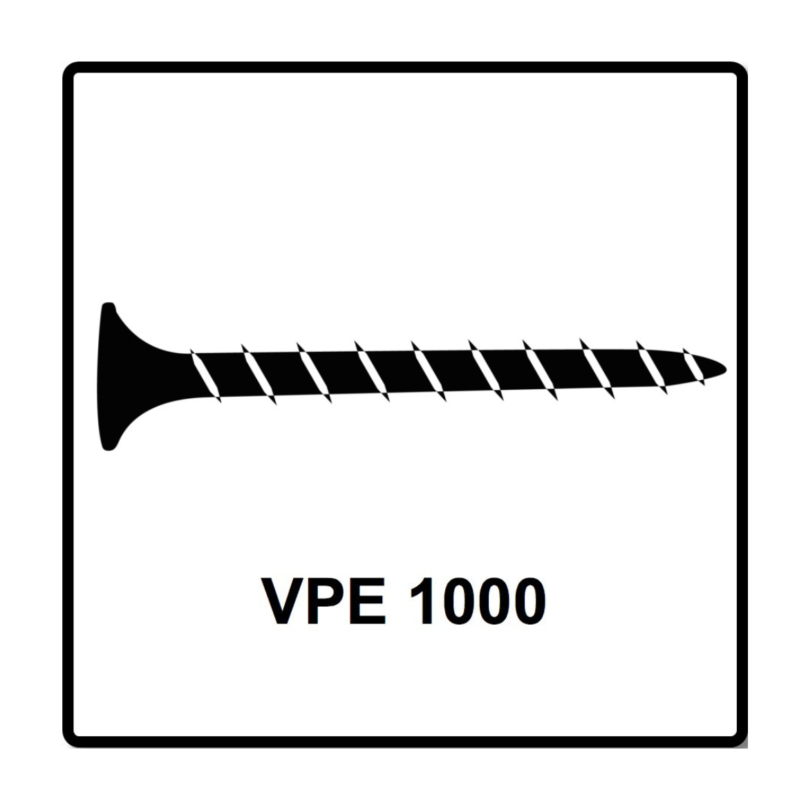 - 1x SPAX Schnellbauschrauben Grobgewinde magaziniert, 3,9x25 mm, 1000 Stück, Vollgewinde, Trompetenkopf, Kreuzschlitz H2, Nadelspitze, Phosphatiert schwarz ( 1891170390256 )