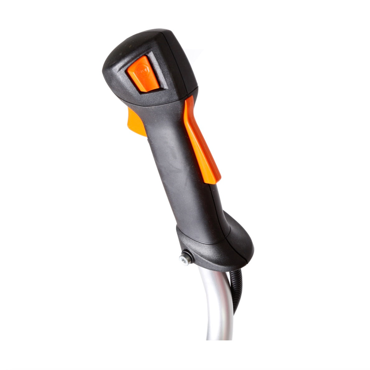 Die FS 91 Motorsense von Stihl überzeugt durch eine sehr leichte und kompakte Bauweise, wodurch sie äußerst vielseitig einsetzbar ist. Besonders gut für Flächenarbeiten in zähem Gras geeignet, bringt es der Motor auf eine Leistung von 0,95 kW. Der 4-Mix-Motor sorgt nicht nur für gleichbleibend starke Leistung, sondern spart dazu noch merklich Kraftstoff und der Abgasausstoß kann so bis zu 70% gesenkt werden. Mit dem Doppelschultergurt, dem Multifunktionsgriff und dem ergonomischen Zweihandgriff, dem Mählenker, liegt die Sense immer bestens in der Hand und eignet sich optimal für lange Einsätze. Hierzu trägt auch der vergrößerte Tank und der Luftfilter mit hoher Standzeit bei, was die FS 91 sehr wartungsarm macht. Außerdem ist die Sense mit einer Antivibrationsmechanik ausgestattet, was die Gelenke schont.