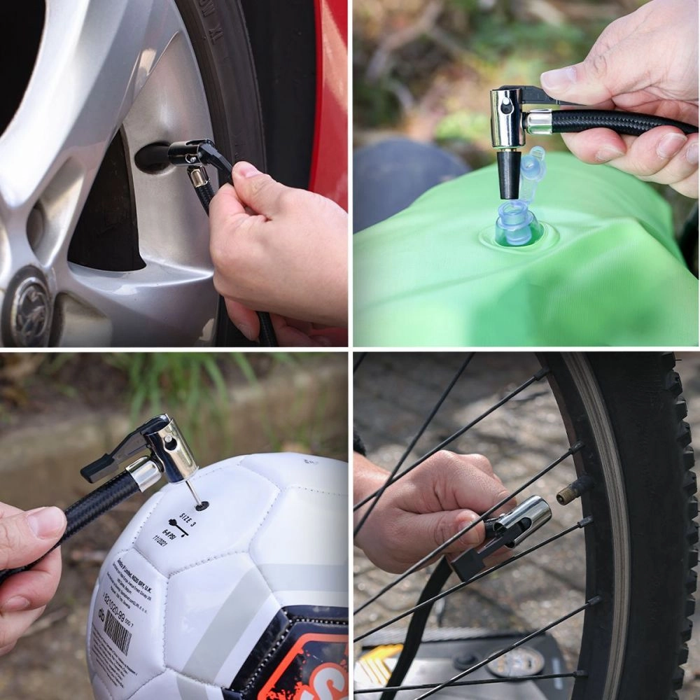 Mit dem digitalen Reifenfüller TM-TС110D von TOUGH MASTER pumpen Sie typische Autoreifen dank des leistungsstarken 110 Watt Spulenmotor aus reinem Kupfer in 5–6 Minuten problemlos von 0 auf 35 psi auf. Diese praktische Luftpumpe liefert einen maximalen Druck von 150 PSI und eignet zum Aufpumpen von Reifen an mittelgroßen SUVs und kleineren Fahrzeugen. Neben Auto- und Motorradreifen kann die digitale Luftpumpe mithilfe der mitgelieferten Aufsätze noch viele weitere Artikel aufpumpen. Im Lieferumfang enthalten ist eine Düse zum Aufpumpen von Schlauchbooten, eine Fahrradadapterdüse zum Aufpumpen von Fahrradreifen und eine Kugelnadeladapterdüse für Fußbälle und andere Sportgeräte, Spielgeräte und andere Schlauchboote. Gefertigt ist der Autoreifenfüller aus leichtem, strapazierfähigen ABS-Kunststoff und der verbaute Schlauch wurde so konzipiert, dass er selbst bei maximalem Luftstrom hohen Luftdrücken standhält. Zu den Vorteilen dieses Geräts zählt die automatische Abschaltfunktion, durch welche Sie sich keine Gedanken über zu hohen oder zu geringen Druck machen müssen. Die Pumpe arbeitet nur solange, bis der voreingestellte Druck erreicht ist und schaltet sich anschließend automatisch ab. Des Weiteren besitzt der Luftkompressor ein 3 Meter langes Stromkabel mit Zigarettenanzünder-Stecker, dass Ihnen eine große Reichweite garantiert und Sie somit ohne Probleme die Vorder- und Hinterreifen Ihres Autos aufpumpen können. Als Stromquelle dient die Batterie Ihres Autos. Zur Inbetriebnahme kann der Stecker des Kabels in den Zigarettenanzünder des jeweiligen Kfz eingesteckt werden. Solange Sie den elektrischen Reifenfüller nicht verwenden, können Sie das Stromkabel mühelos an der Seite der Autoreifenpumpe verstauen. Zudem ermöglicht das kompakte Design des Autoluftkompressors ein einfaches Transportieren und Aufbewahren. Zu den weiteren Vorteilen zählen die eingebauten LEDs, mit welchen Sie Ihren Arbeitsbereich ausleuchten können, ein digitales LCD-Display, mit dem Sie selbst bei schlechten Lichtverhältnissen den Druckpegel leicht überwachen können, eine kleine Tragetasche zum Verstauen der Inhalte sowie die Möglichkeit zwischen den Einheiten kg/cm2, BAR, PSI, oder KPA zu wählen.