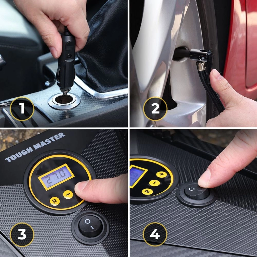 - 1x TOUGH MASTER Digitaler Reifenfüller 12 V, 110 W