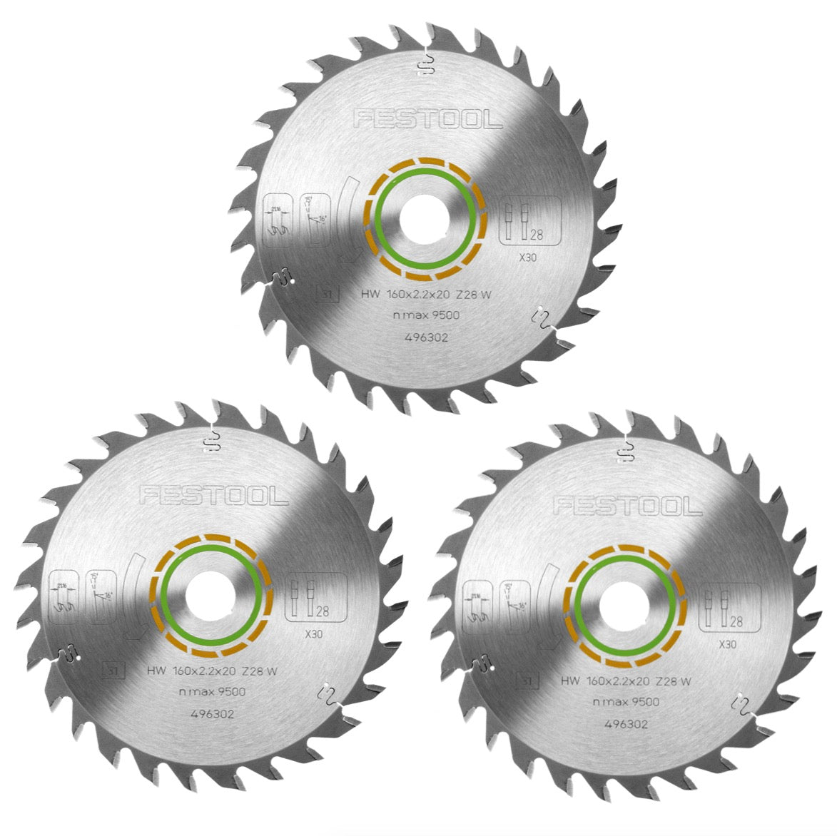 - 3x Festool Universal Kreissägeblatt W28 160 x 2,2 x 20 mm 160 mm 28 Zähne ( 496302 )