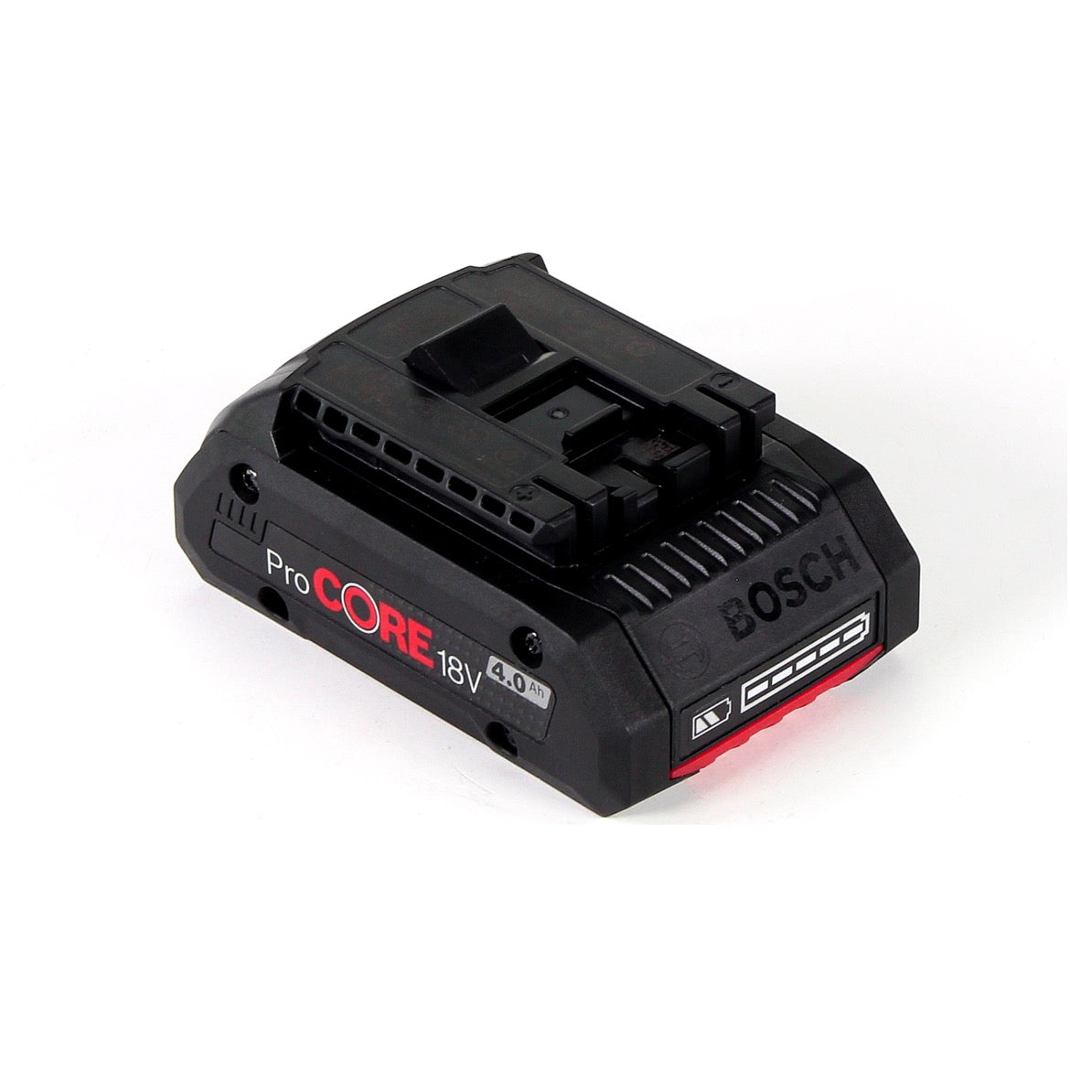 Der Bosch GBA ProCORE Professional ist ein 18 Volt starker Einschub Akku mit 4,0 Ah, basierend auf der Lithium Ionen Technologie. Die ProCORE Technologie überzeugt mit ihrer Leistungsstärke, die mit dem 1.600 Watt-Motor eines Kabelgebundenen Geräts vergleichbar ist und liefert so genügend Kraft für schwerste Anwendungen mit Akku betriebenen Werkzeugen. Es liefert somit 87% mehr Leistung als normale 18 Volt Akku betriebene Geräte und garantiert durchgehend hohe Leistungen dank überlegenem Wärmemanagement mit dem COOLPACK 2.0 System von Bosch. Dieses Bosch-eigene Kühlsystem der Akkus schützt die Akkus noch effizienter vor Überhitzung und steigert die Lebensdauer der Akkus um 135%. Der Akku ist mit allen Bosch 18 V Geräten kompatibel und besitzt eine LED Ladestandsanzeige auf der Vorderseite.