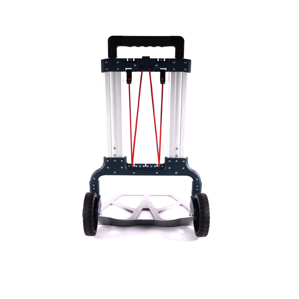 Die Bosch Alu Caddy Sackkarre besticht durch die kompakte Bauweise und das leichte Gewicht von gerade einmal 7,1 kg. Dank den zusammenklappbaren Räder in Kombination mit der klappbaren Auflagefläche, ist die Sackkarre schnell und simpel ausgeklappt. Der gut zu fassende Handgriff unterstützt den sicheren Transport der aufliegenden Ware. Darüber hinaus garantieren die seitlichen Auflageflächen einen sicheren Transport von passenden Werkzeugboxen. Elastische Gummibänder an der Sackkarre bieten eine zusätzliche Sicherheit bei einem unebenen Untergrund. Mit einem Belastungsgewicht von 125 kg auf gerader Fläche und 60 kg bei Treppenstufen ist die Bosch Alu Caddy Professional Klappbare Sackkarre eine echte Arbeitserleichterung.