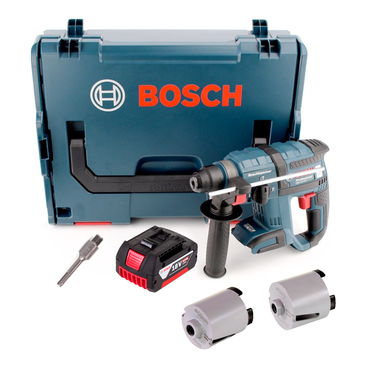 Bosch GBH 18 V-EC Akku Bohrhammer 18V 1,7J SDS-plus Brushless + 1x Akku 5,0Ah + Zubehör Steckdosenbohrkronen + L-Boxx - ohne Ladegerät