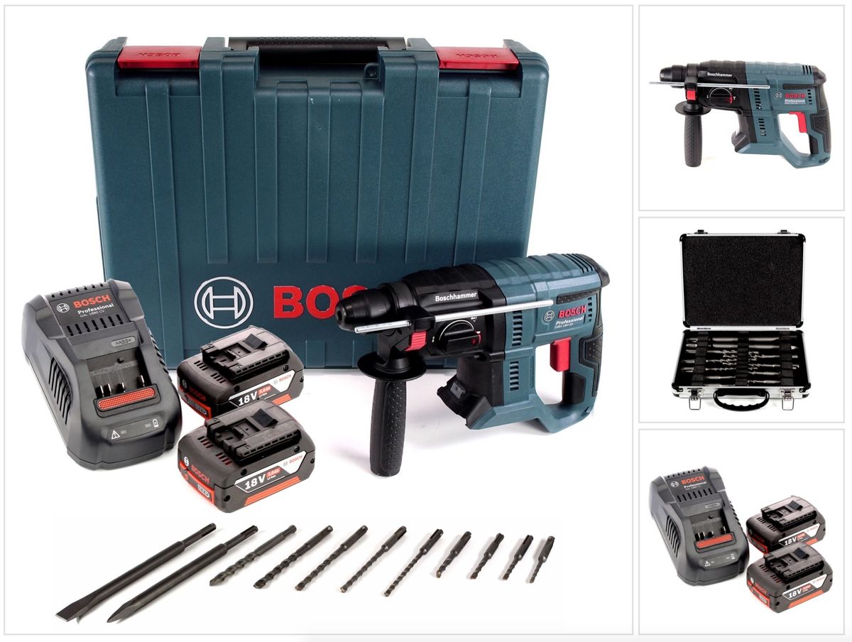 Bosch GBH 18V-20 18 V Li-Ion Akku Bohrhammer mit SDS-Plus im Koffer + 2 x 5,0 Ah Akku + Ladegerät + 11 tlg. Bohrer- und Meißelset