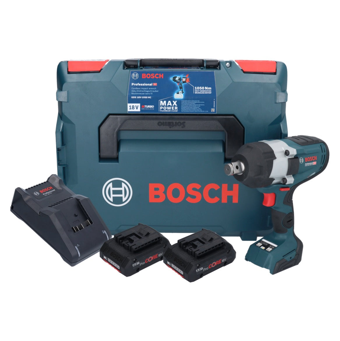 Bosch GDS 18V-1050 HC Akku Drehschlagschrauber 18 V 1050 Nm BITURBO Brushless + 2x ProCORE Akku 4,0 Ah + Ladegerät + L-Boxx