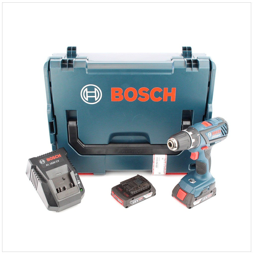 Bosch GSR 18-2-Li Plus Professional Akku Bohrschrauber mit 2 x 2 Ah GBA Akkus + AL1820CV Ladegerät + L-Boxx