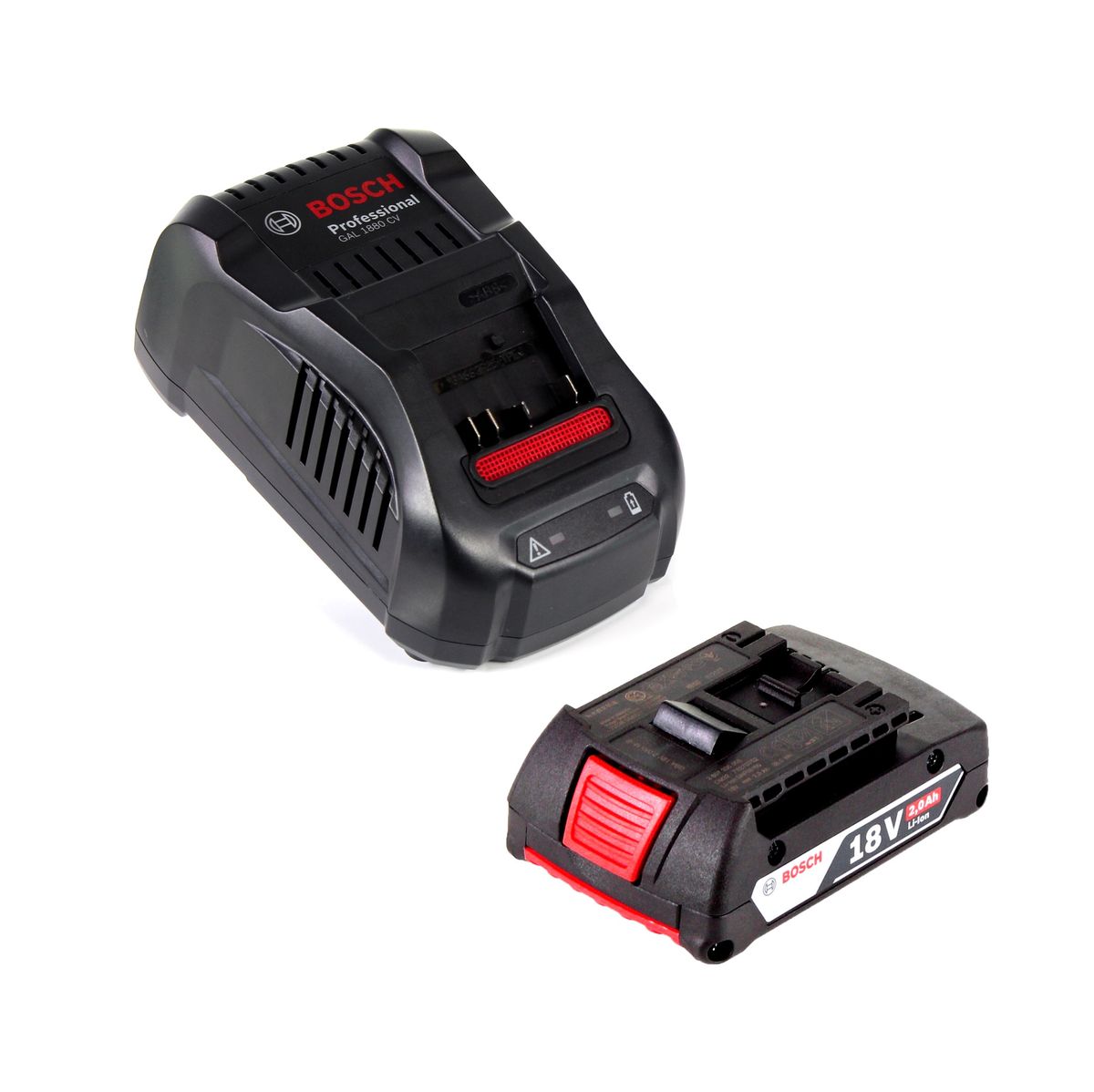 - 1x Bosch Schnellladegerät GAL 1880 CV für 14,4V - 18V Li-Ion Akkus