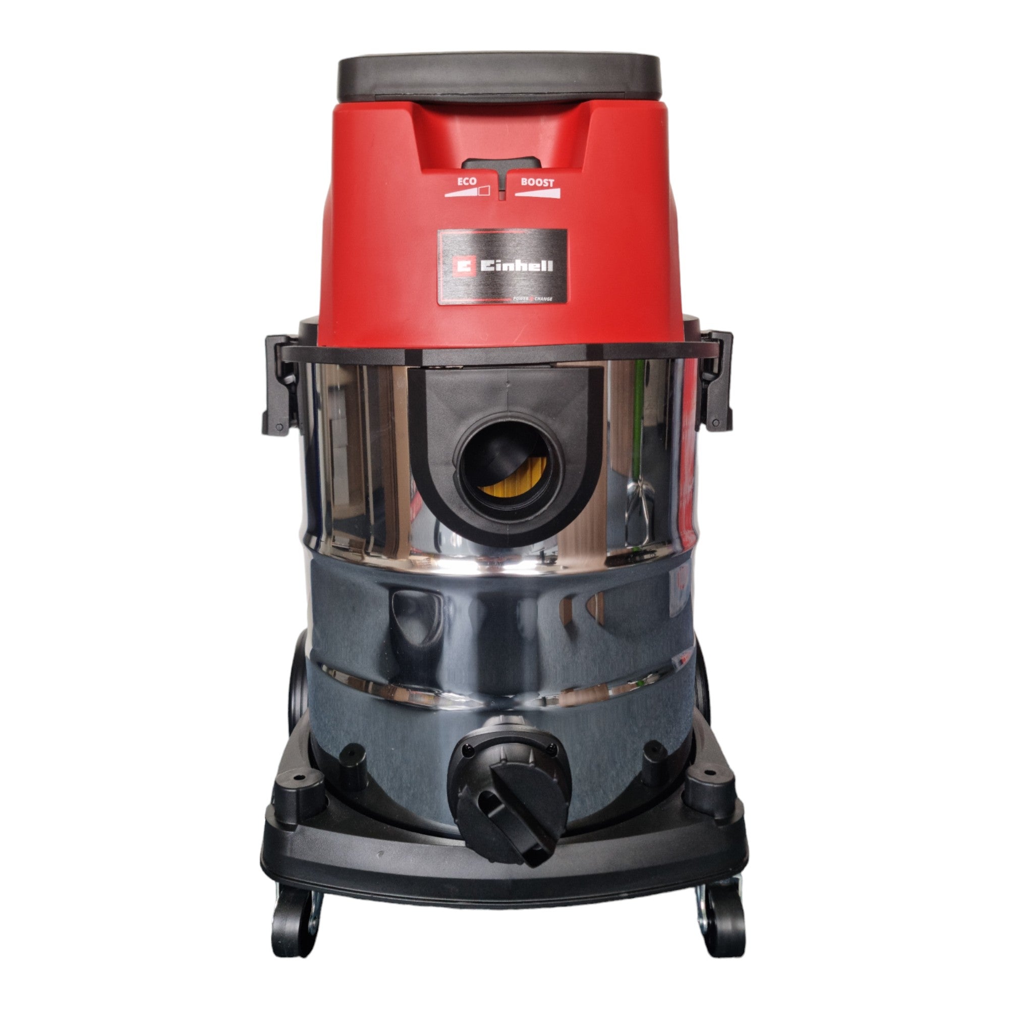 Der Einhell TE-VC 36/25 Li S-Solo Akku Nass-Trockensauger ist ein unverzichtbarer Helfer im Alltag, der mühelos alle Flächen porentief reinigt und sowohl Staub und Schmutz als auch Flüssigkeiten effektiv entfernt. Als Teil der Power X-Change-Familie bietet dieser Nass-Trockensauger absolute Flexibilität, da er kabellos betrieben werden kann und mit den leistungsstarken Akkus auch bei schwierigen Einsätzen stets zuverlässig arbeitet. Die Akkus der gesamten Power X-Change-Systemreihe sind kompatibel, was die Handhabung besonders praktisch macht. Der Sauger verfügt über zwei einfach per Knopfdruck wählbare Leistungsmodi: Der ECO-Modus verlängert die Akku-Laufzeit und eignet sich hervorragend für längere Saugarbeiten, während der BOOST-Modus mit maximaler Saugleistung auch hartnäckigen Schmutz mühelos beseitigt. Ausgestattet mit einer Kombi-Düse für Teppich- und Glattböden, einer Polsterdüse für Autositze und andere Polstermöbel sowie einer Fugendüse für schwer zugängliche Ecken, meistert der Sauger jede Herausforderung und ist ideal für den Einsatz im Haus, der Werkstatt oder der Garage. Eine zusätzliche Blasfunktion ermöglicht es, enge Nischen auszublasen, um den Schmutz dann bequem aufzusaugen. Zum Lieferumfang gehören ein Schaumstofffilter für das Nasssaugen sowie ein Faltenfilter und ein Papierschmutzfangsack für das Trockensaugen. Dank des Fehlluftreglers am Handgriff kann die Saugleistung von bis zu 150 mbar an sensible Arbeitsbereiche angepasst werden. Der rostfreie und stabile Edelstahlbehälter fasst bis zu 25 Liter Schmutz und Flüssigkeiten, die durch die integrierte Wasserablassschraube kinderleicht entleert werden können. Für maximalen Komfort und Flexibilität sorgen die Räder, Rollen und der Tragegriff, mit denen sich der Nass-Trockensauger mühelos zum Einsatzort transportieren lässt. Der 2,5 Meter lange, robuste Plastiksaugschlauch mit einem Durchmesser von 36 Millimetern und das teleskopierbare Edelstahlrohr gewährleisten eine optimale Reichweite und Anpassung an die eigene Körpergröße, sodass auch Einsätze über Kopf problemlos möglich sind. Die praktische Zubehörhalterung und die Saugrohrhalterung sorgen dafür, dass Sauger und Zubehör schnell und sauber verstaut sowie ebenso schnell wieder einsatzbereit sind.