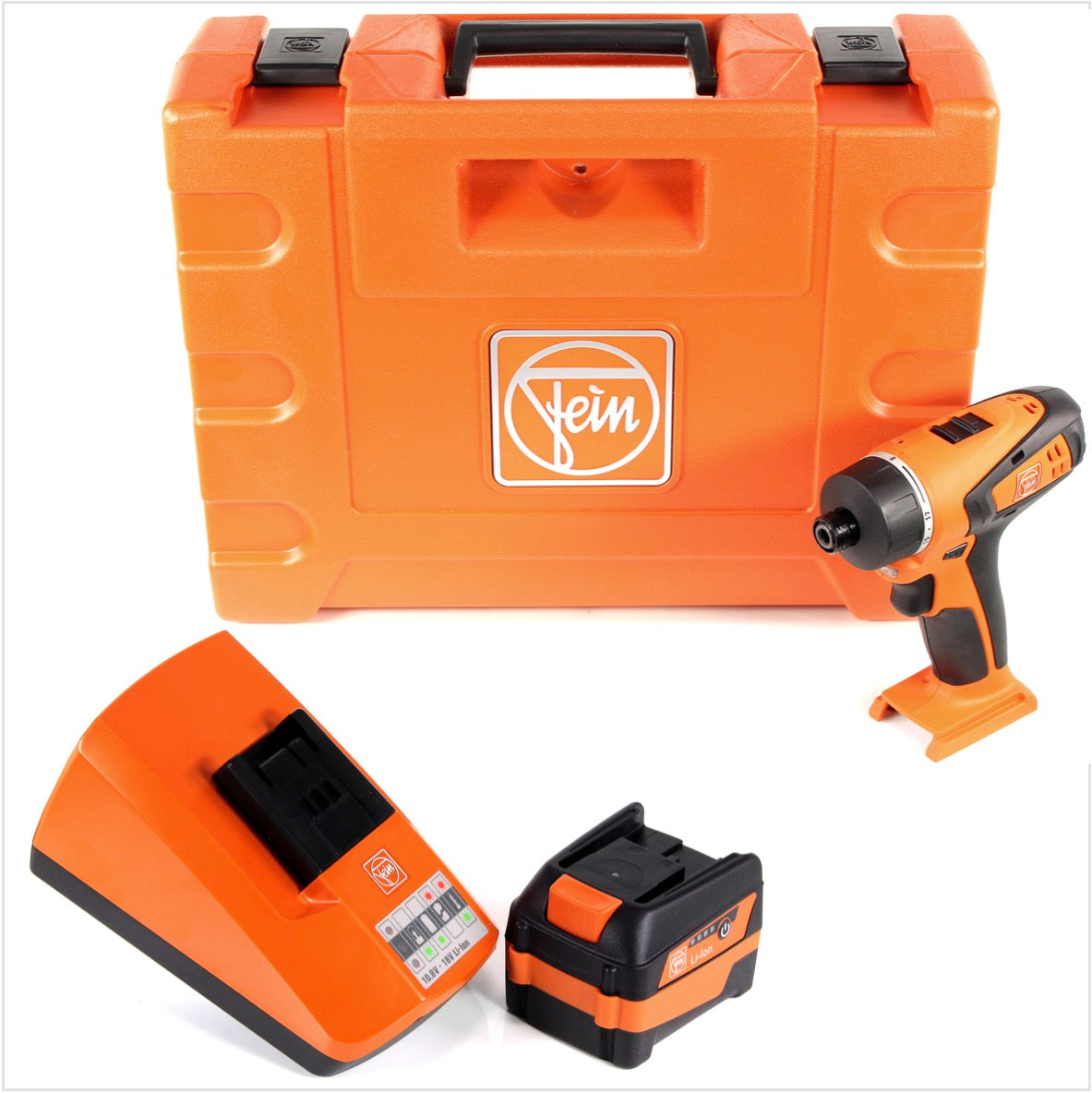 Der FEIN ABSU 12 W4  Li-Ion Akku Bohrschrauber ist ein kompakter Akkubohrschrauber mit hervorragender Ergonomie und extrem kurzer Bauweise. Der Schrauber verfügt über einen starken und langlebigen DC-Motor, der Schutz vor Überhitzung und Überlastung bietet. Weiterhin verfügt der Schrauber über eine praktische 1/4" Sechskantaufnahme. Der Bohrschrauber eignet sich dadurch perfekt für alle Montagearbeiten. Er bietet 17 Drehmomentstufen, welche die Kraft gut dosieren lassen, bis zu 20 Nm im harten Schraubfall. Eine helle LED-Leuchte sorgt für optimale Sichtverhältnisse beim Arbeiten. Die FEIN SafetyCell Technology schützt den Akku und die Maschine vor Überlastung, Überhitzung und Tiefenentladung. Weiterhin ist der Akku-Ladestand direkt am Akku ablesbar. Der Fein Akku hat eine Kapazität von 6,0 Ampere und ist durch die SafetyCell Technology vor Überlastung, Überhitzung und Tiefenentladung geschützt. Die Kompatibilität mit allen 12 Volt und 18 Volt Werkzeugen die eine MultiVolt Schnittstelle besitzen ist ein großer Vorteil. Durch die am Akku angebrachte LED Ladestandsanzeige ist eine Kontrolle des Ladestands jederzeit problemlos möglich. FEIN ist ein Hersteller der Premium Klasse, dies merkt man auch an der Akku Verarbeitung. Mit dem Schnellladegerät ALG 50 aus dem Hause Fein können alle Fein Li-Ion Akkus, ganz gleich welche Kapazität oder Spannung der Akku besitzt, geladen werden. Das Ladegerät lädt die kleinsten Akkus schon ab 35 Minuten vollkommen auf.