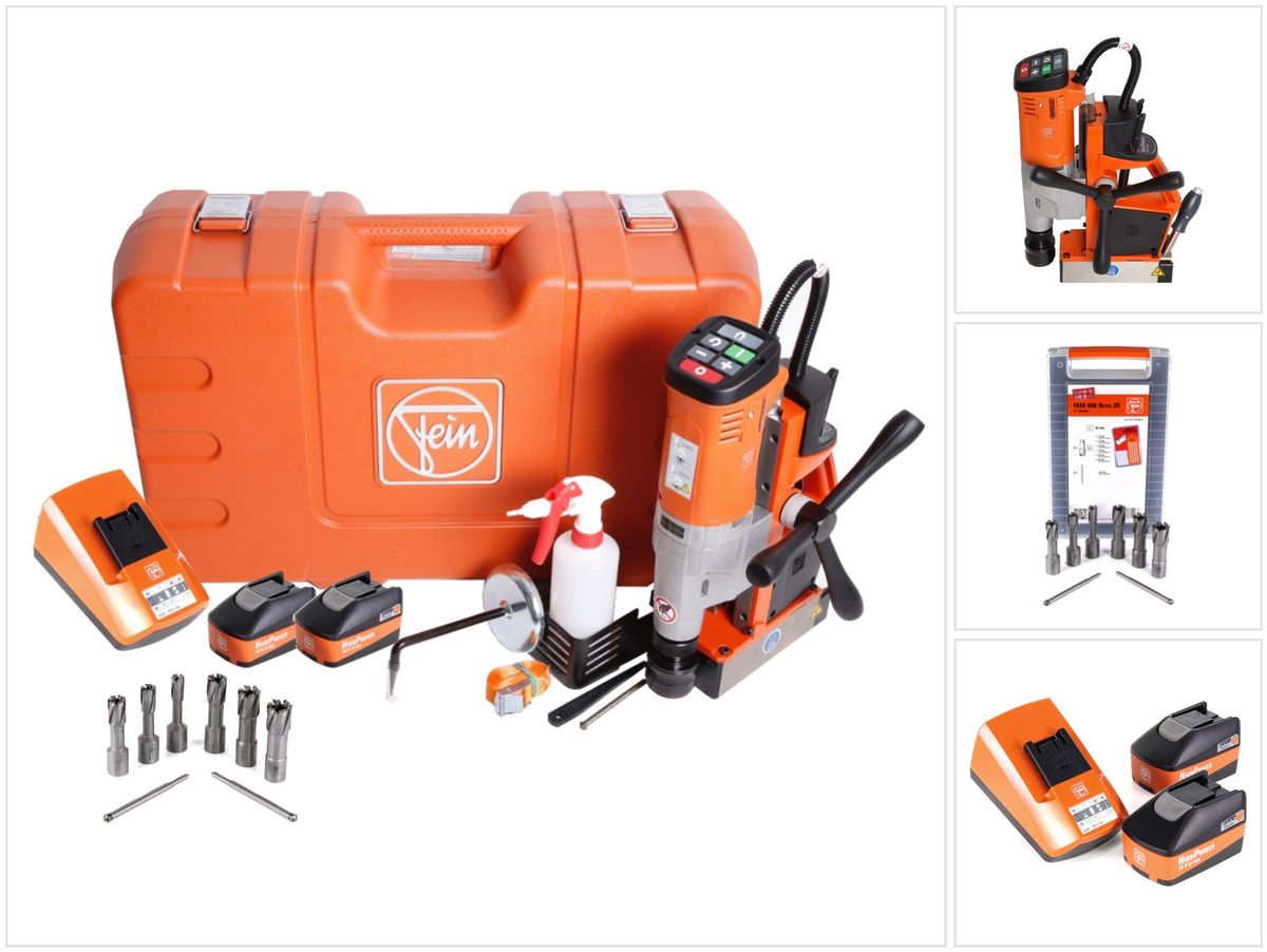 FEIN AKBU 35 PMQW 18 V Brushless Li-Ion Akku Magnet Kernbohrmaschine 35 mm im Koffer + Bohrer-Set + 2x 5,2 Ah Akku + Ladegerät