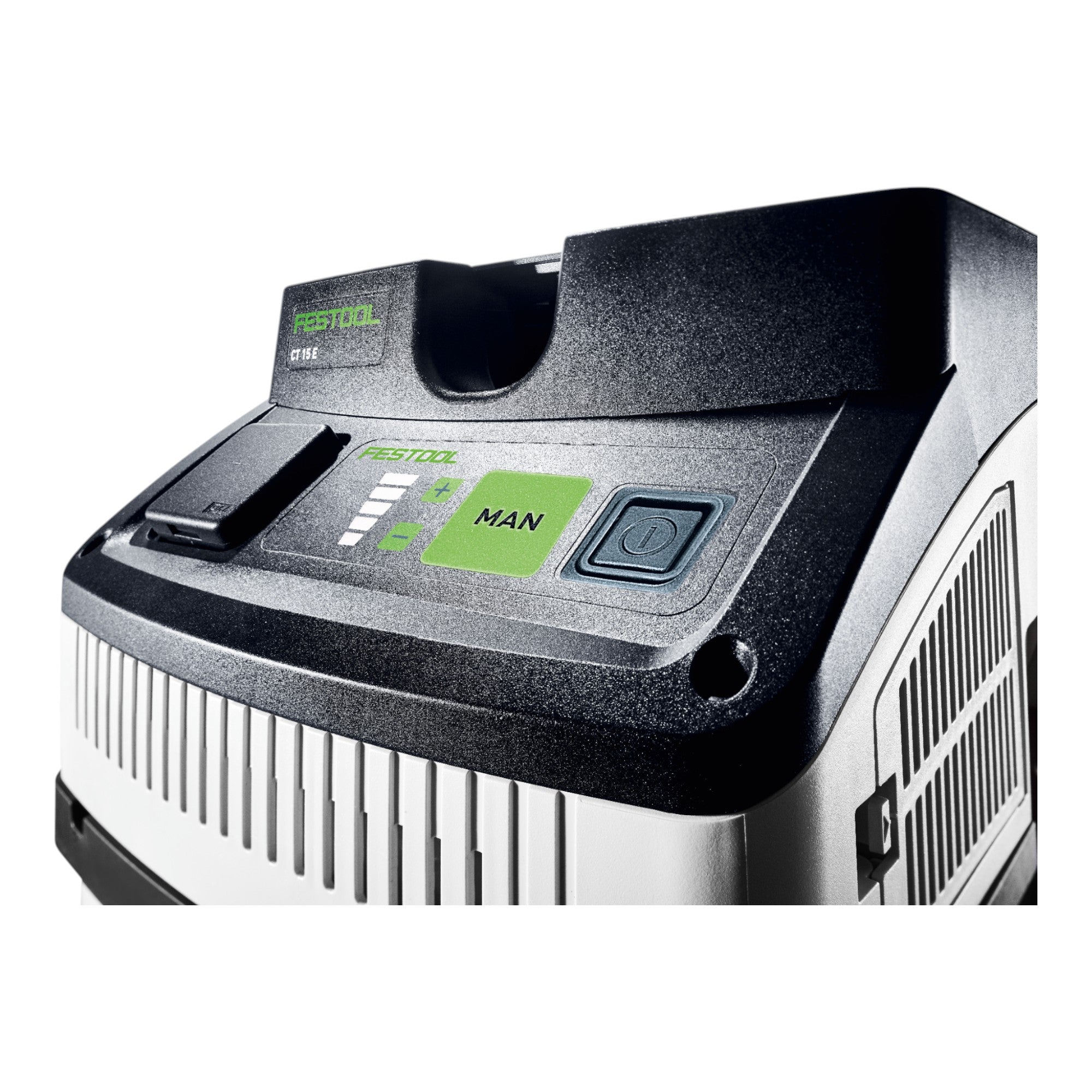 Das Festool CT 15 CLEANTEC Absaugmobil ist der ideale Begleiter für gründliche Reinigungsarbeiten in Werkstatt, Büro, Garage, auf der Baustelle oder am Fahrzeug – leistungsstark, kompakt und durchdacht in jedem Detail. Mit einem großzügigen 15-Liter-Behältervolumen, das dank der optimierten Bauform vollständig nutzbar ist, ermöglicht der CT 15 langes Arbeiten ohne häufigen Filtersackwechsel und saugt dabei zuverlässig Staub, Schmutz und sogar Wasser. Das robuste Fahrwerk, das geringe Gewicht und die kompakten Maße machen ihn besonders mobil und ideal für den flexiblen Einsatz unterwegs. Die intuitive Touch-Bedienung ermöglicht eine einfache Steuerung, während die fünfstufige Saugkraftregulierung für optimale Anpassung an jede Anwendung sorgt. Praktisch: Eine flache Ablagefläche dient als Ablage für Werkzeuge oder Materialien, und das enthaltene Reinigungszubehör ist direkt im Gerät untergebracht – sofort griffbereit. Der Hauptfilter lässt sich bequem von außen wechseln, und die integrierte Antistatik-Funktion schützt zuverlässig vor statischer Aufladung beim Arbeiten.