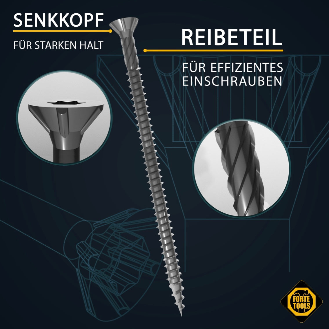 FORTE Tools Universal Holzschraube 3,5 x 50 mm T15 200 Stk. ( 000040113866 ) silber verzinkt Torx Senkkopf Vollgewinde