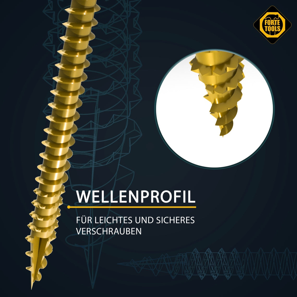 FORTE Tools Universal Holzschraube 5,0 x 120 mm T25 400 Stk. ( 4x 000051399484 ) gelb verzinkt Torx Senkkopf Teilgewinde