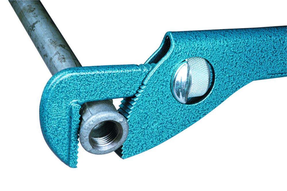 blau pulverbeschichtet · mit geschmiedeten Wirkteilen · induktiv gehärtete Verzahnung · leichte und schnelle Verstellmöglichkeit mit Gewinderolle - Einhandverstellung · selbsthemmende Griffbacken