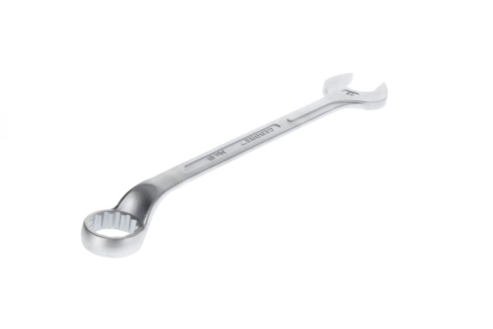 CV-Stahl · verchromt · mit gleichen Schlüsselweiten · Ringseite gekröpft und 10° abgewinkelt, Maulstellung 15° DIN 3113 Form B / ISO 3318 / ISO 7738