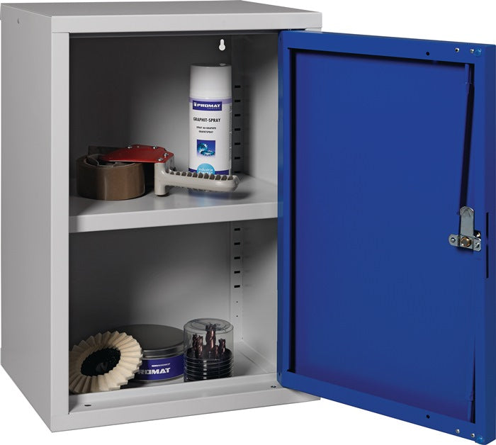 Hängeschrank ( 9000453657 ) H600xB400xT300 mm Vollblech, 1 Boden lichtgrau, RAL 7035/enzianblau, RAL 5010
