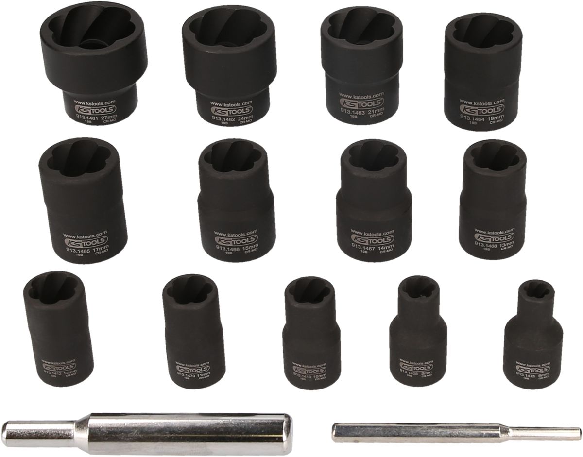 KS TOOLS 1/4"+1/2" Spiral-Profil-Kraft-Stecknuss-Satz, 15-tlg ( 913.1460 )