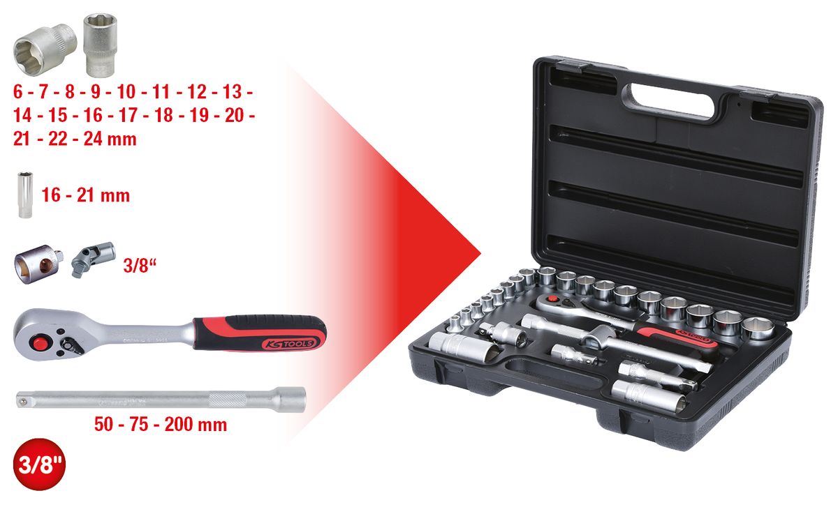 KS TOOLS 3/8" Steckschlüssel-Satz, 26-tlg ( 911.0626 )