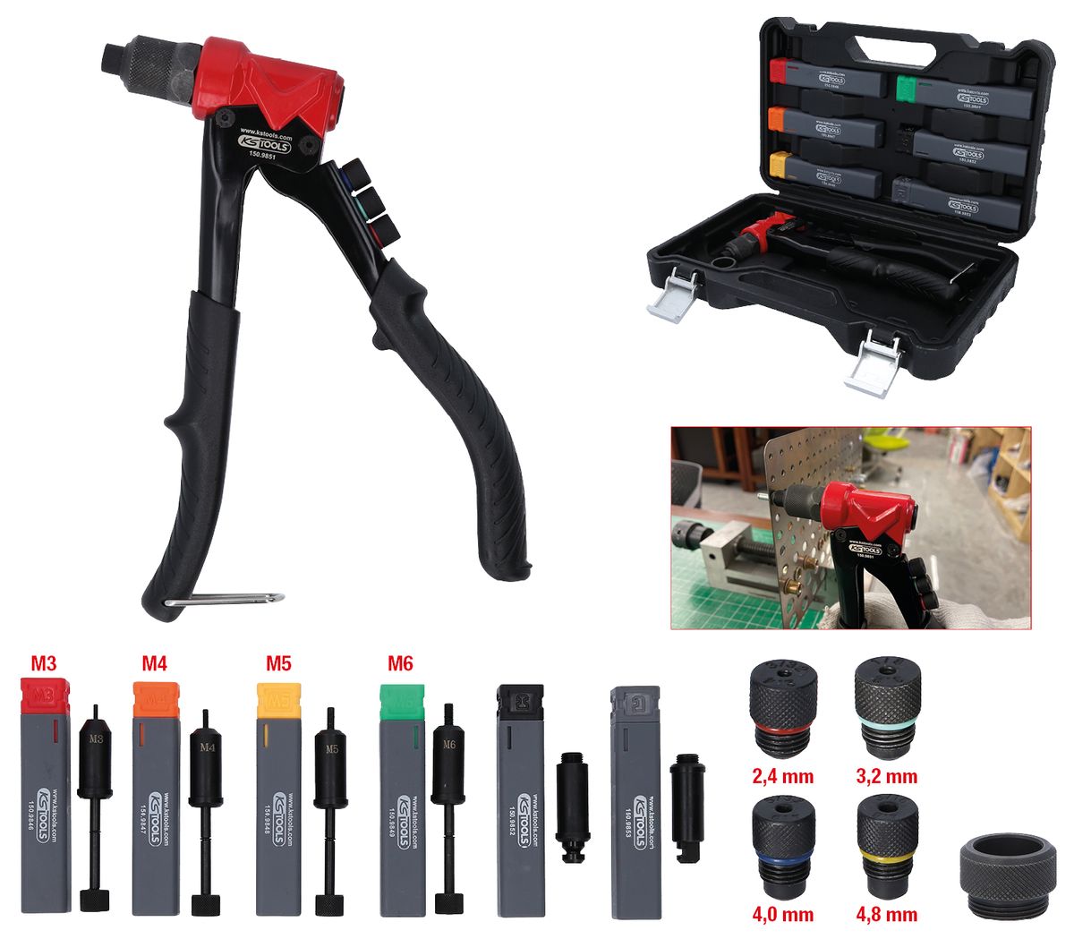 • inklusive 4 auswechselbaren Mundstücken und 4 auswechselbaren Nietmutternzugdornen