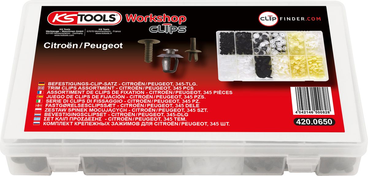 KS TOOLS Befestigungs-Clip-Satz Citroën/Peugeot, 345-tlg ( 420.0650 )