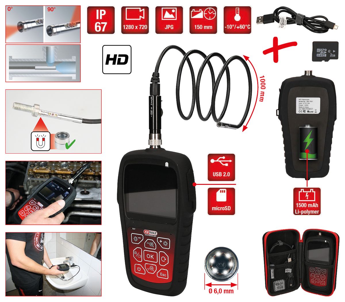 KS TOOLS HD-Videoskop-Satz mit Ø 6,0 mm 0° und 90° HD Frontkamera-Sonde, umschaltbar, 5-tlg ( 550.7500 )