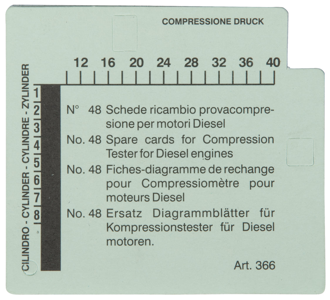 Kompressions-Druckprüfgerät-Diagrammkarten-Satz für Dieselmotoren (VPE=48) · Kompressions-Druckprüfgerät-Diagrammkarten-Satz für Dieselmotoren (max. 60 bar)