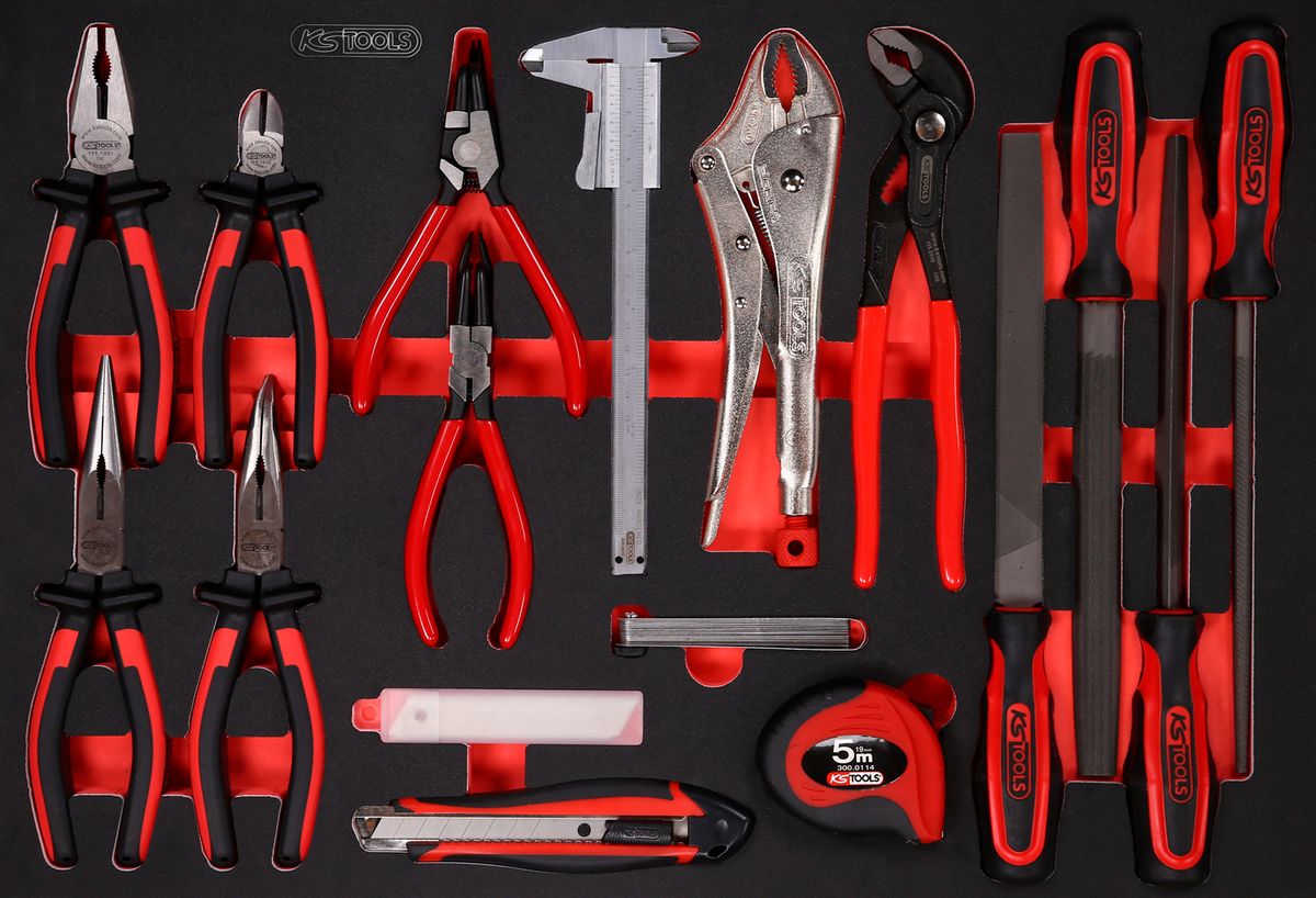 KS TOOLS Zangen- / und Feilen-Satz in Schaumstoffeinlage, 28-tlg ( 811.0019 )