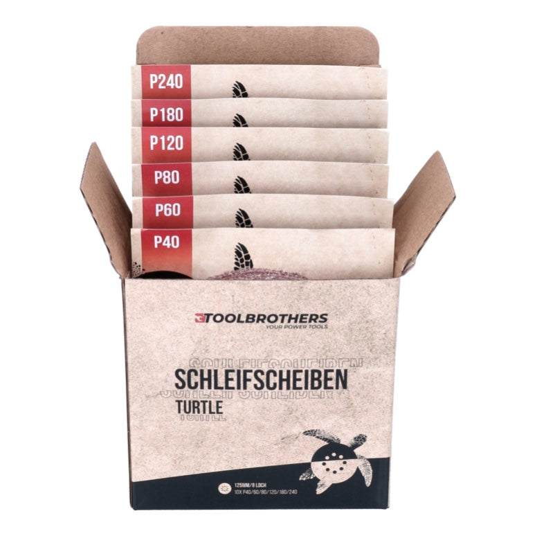 Makita DBO 180 Z Akku Exzenterschleifer 18 V 125 mm + 4x Toolbrothers TURTLE Schleifset - ohne Akku, ohne Ladegerät
