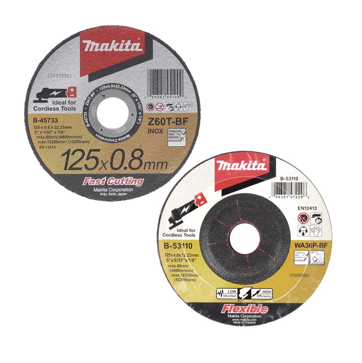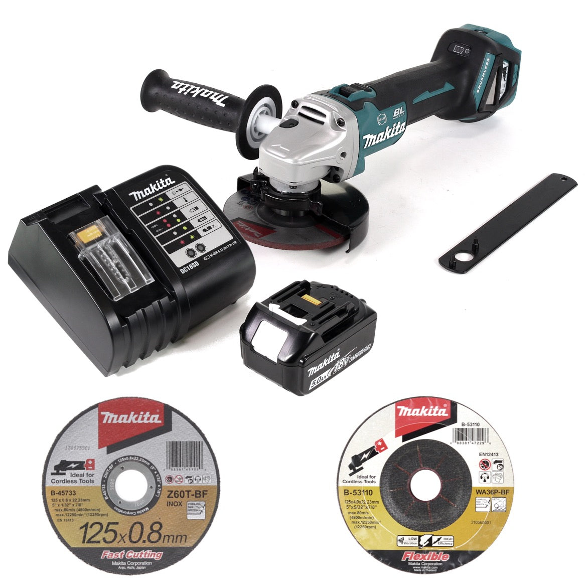 Makita DGA 513 ST1 Akku Winkelschleifer 18V 125mm Brushless + 1x Akku 5,0Ah + Ladegerät + 28x Scheibe