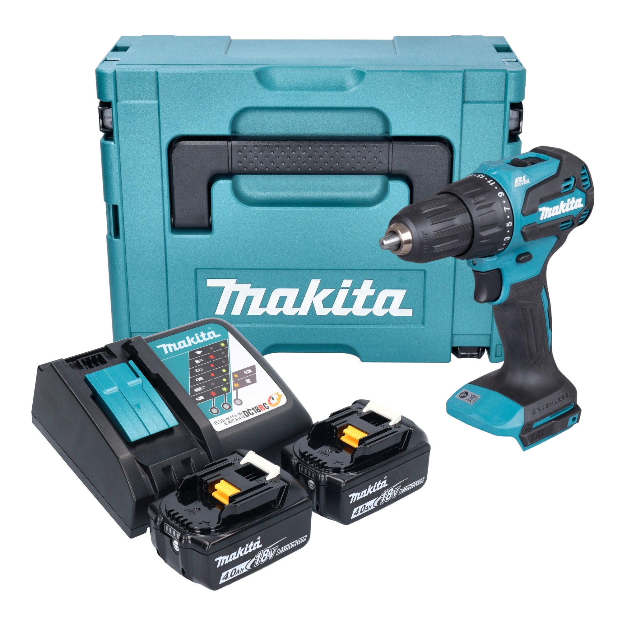 Makita DHP 490 RMJ Akku Schlagbohrschrauber 18 V 65 Nm Brushless + 2x Akku 4,0 Ah + Ladegerät + Makpac