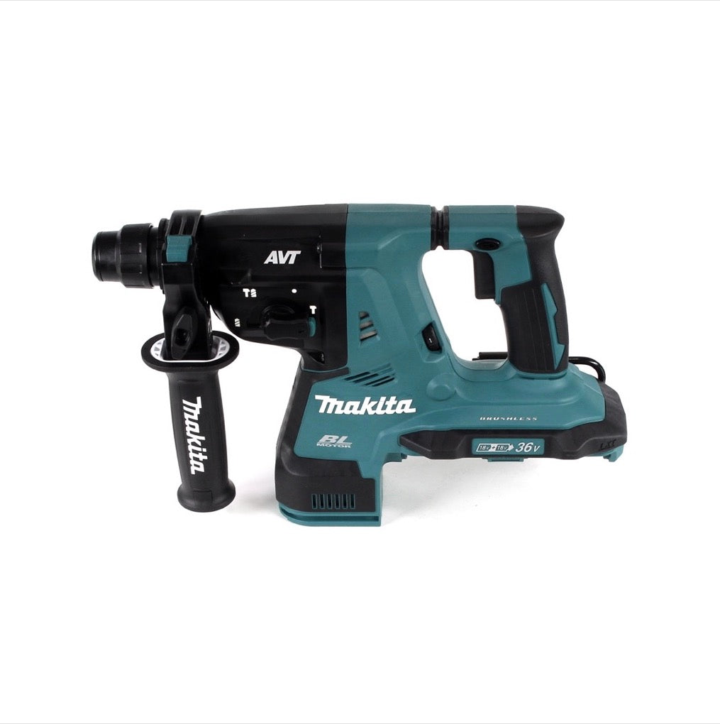 Makita DHR 280 PMJ Brushless Akku Bohrhammer 28 mm 2x 18 V für SDS-PLUS im Makpac + 2x 4,0 Ah Akku + Doppelladegerät + 17tlg. Bohrer und Meißel Set