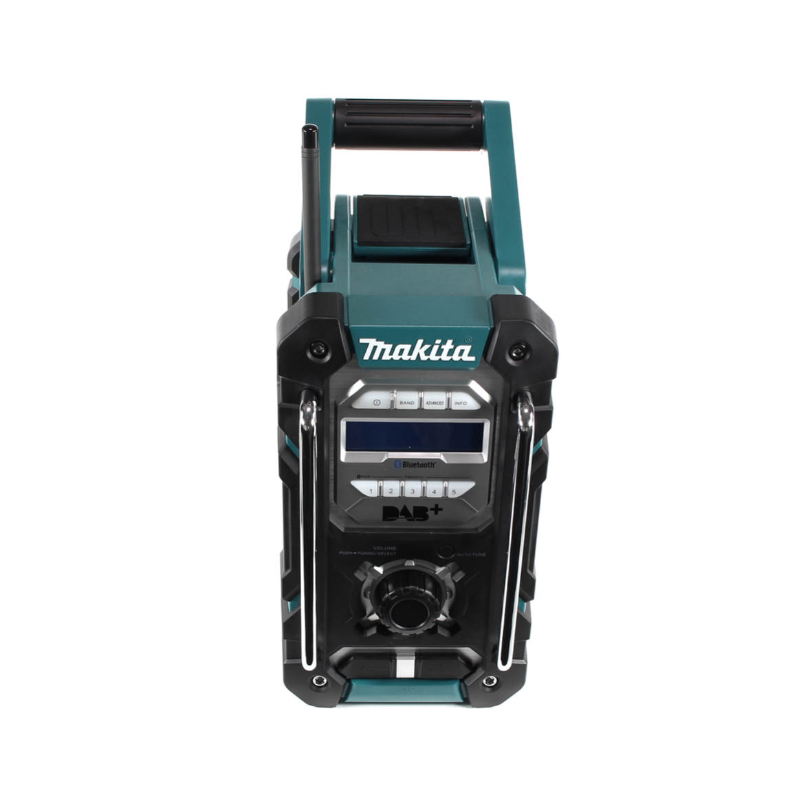 Das Makita DMR 112 Bluetooth Baustellen Radio ist für den Empfang von DAB, DAB+ und FM geeignet. Ausgestattet ist es mit einem USB- und einem Aux-Anschluss, um ein Mobiltelefon oder Tablet aufladen und Musik abspielen zu können. Das Radio kann mit allen Makita-Li-Ion-Akkus von 7,2 - 18 V betrieben werden, jedoch nicht mit Maktec- oder G-Serie-Akkus. Ein Netzteil wird zur dauerhaften Stromversorgung des Radios mitgeliefert. Dieses eignet sich allerdings nicht zum Laden der Akkus. Die Sender ist präzise über das digitale großflächige Display einstellbar. Das Gehäuse hat Spritzschutz bis Schutzklasse IP64. Das Radio ist somit der ideale Begleiter auf der Baustelle, auch bei schlechten Wetterverhältnissen.