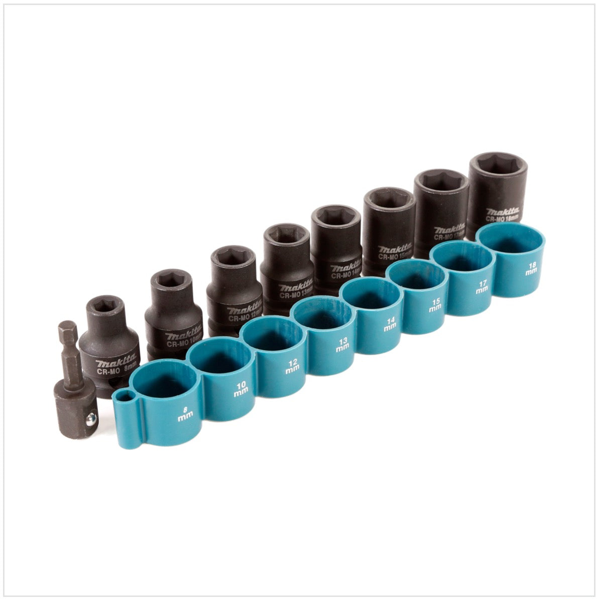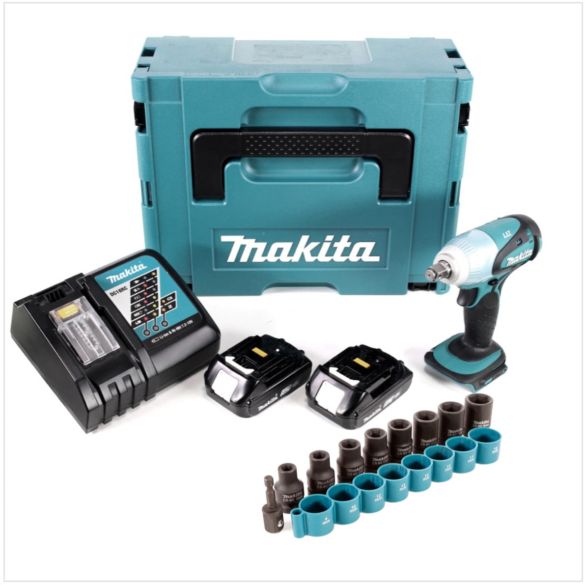 Makita DTW 251 RAJ Akku Schlagschrauber 18 V 230 Nm 1/2" + 2x Akku 2,0 Ah + Ladegerät + 9 tlg. Steckschlüsselsatz + Makpac