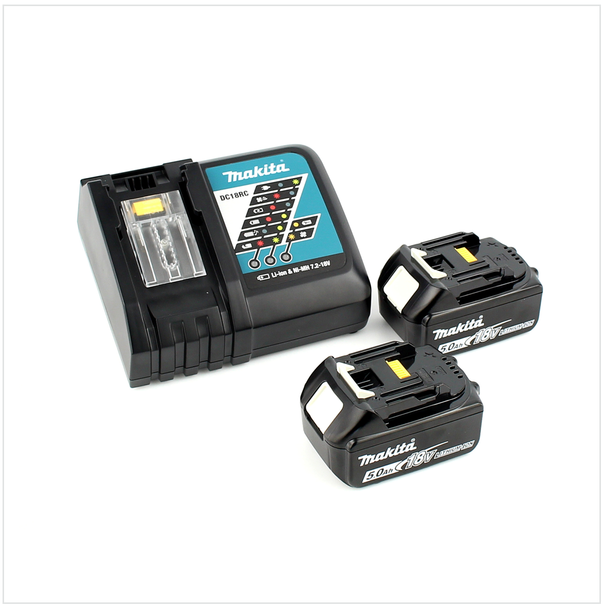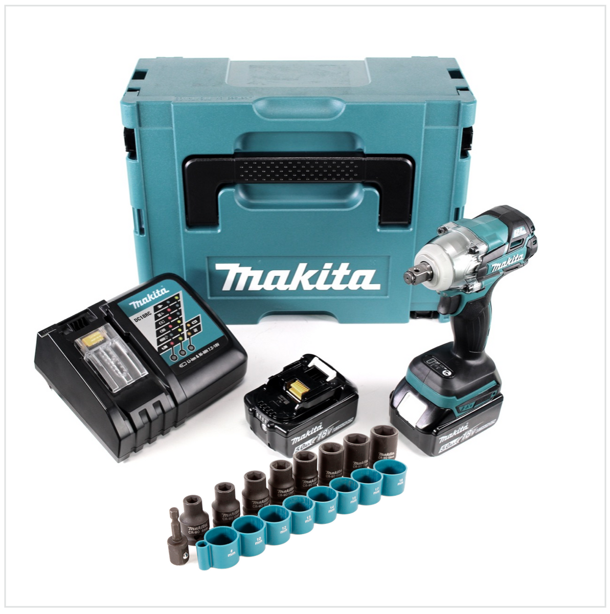 Makita DTW 285 RTJ Akku Schlagschrauber 18 V 280 Nm 1/2 " Brushless + 2x Akku 5,0 Ah + Ladegerät + Steckschlüssel Set + Makpac