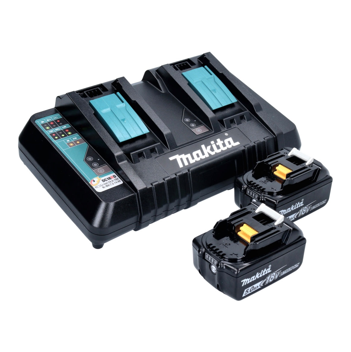 Makita DUC 356 PTB Akku Kettensäge 36 V ( 2x 18 V ) 35 cm Brushless + 2x Akku 5,0 Ah + Doppelladegerät