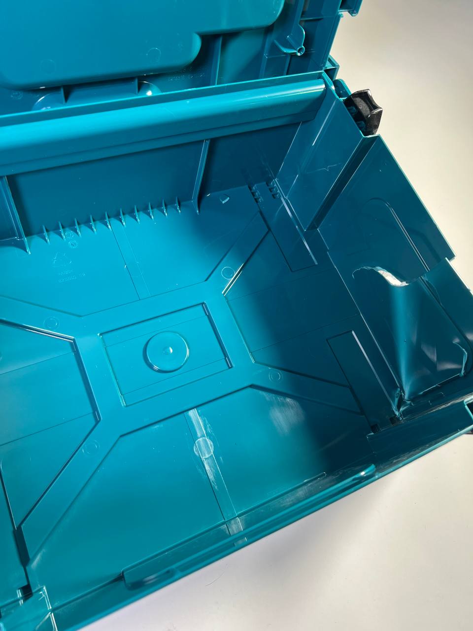 Das Makita MAKPAC-System bietet die beste Voraussetzung, um Ihr Werkzeug und Zubehör stets griffbereit und sicher zu lagern. Die Koffer lassen sich zudem bequem stapeln, festklicken und einfach transportieren. Die Konstruktion des Makita MAKPACs besteht aus doppelwandigen Eckprofilen und verstärkten Deckel-, Seiten- und Bodenflächen. Des Weiteren erhöhen abgerundete Gehäuse- und Griffkanten den Benutzer- und Tragekomfort.