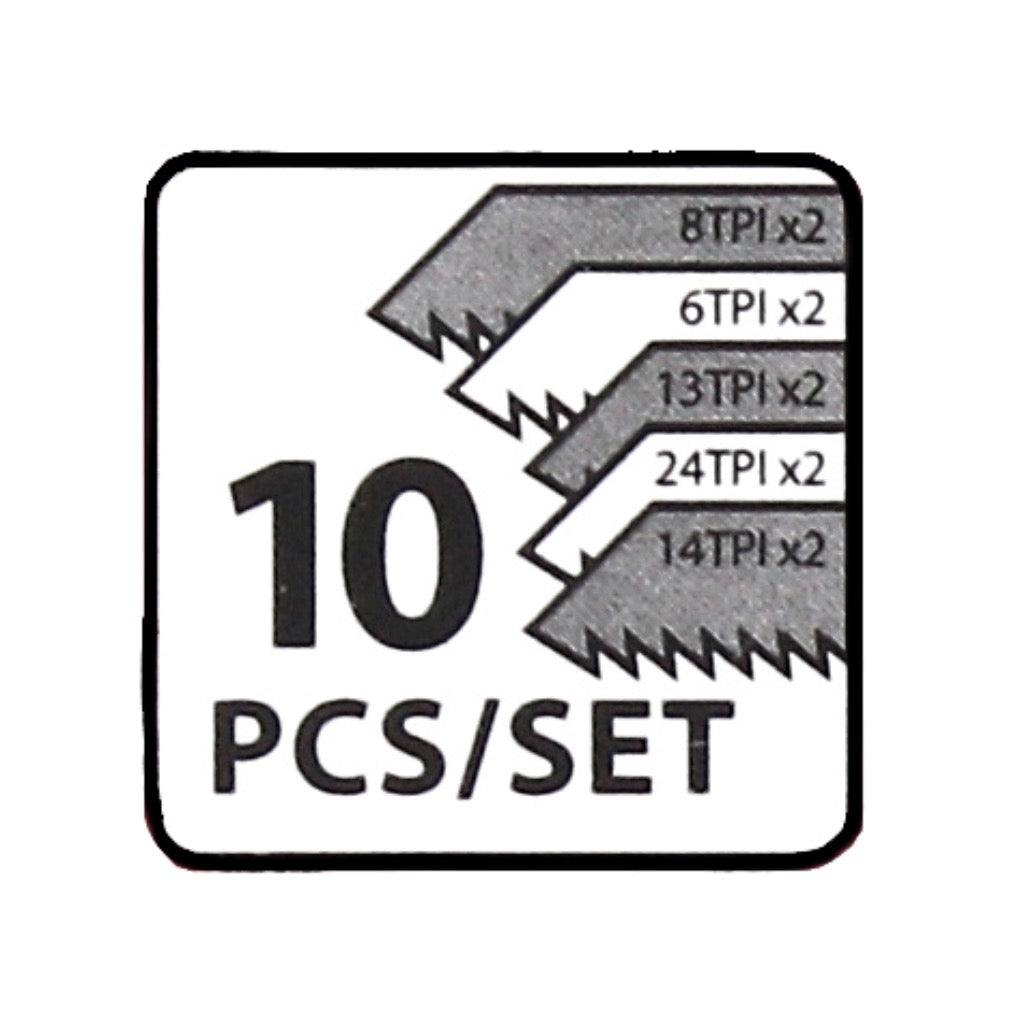 Makita Stichsägeblätter Sortiment A, für Holz und Metall - 10 Stück, verschiedene Blätter für Stichsägen mit T-Schaft Aufnahme + Aufbewahrungsbox ( B-44410 )