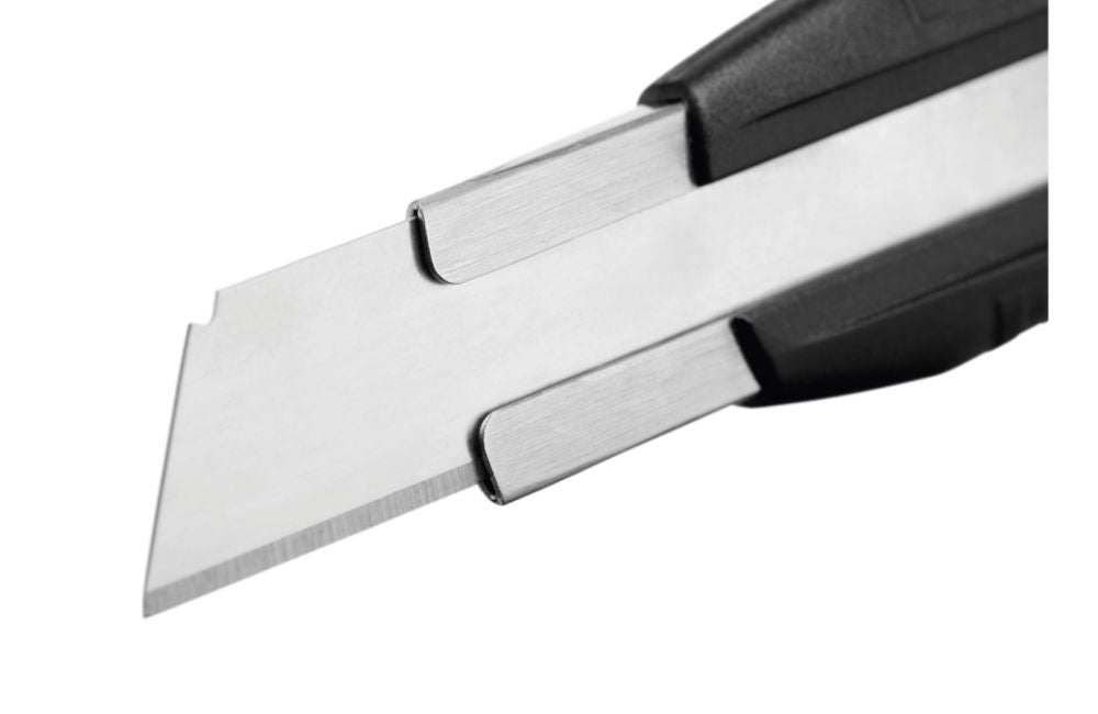 weltweit erstes Sicherheitsmesser mit fast 8 cm Klingenaustritt und automatischem Klingenrückzug · Sicherung verhindert, dass die Klinge ohne Ihr Zutun aus dem Griff gelangt · schneidet wie ein Cuttermesser, nur eben sicherer, z.B. dickere Materialien wie Styropor und Schaumstoff, Bauschaum und Dämmwolle, aber auch bis zu 4-lagige Kartons, Sackwaren und alle Arten von Folie · für Rechts- und Linkshänder