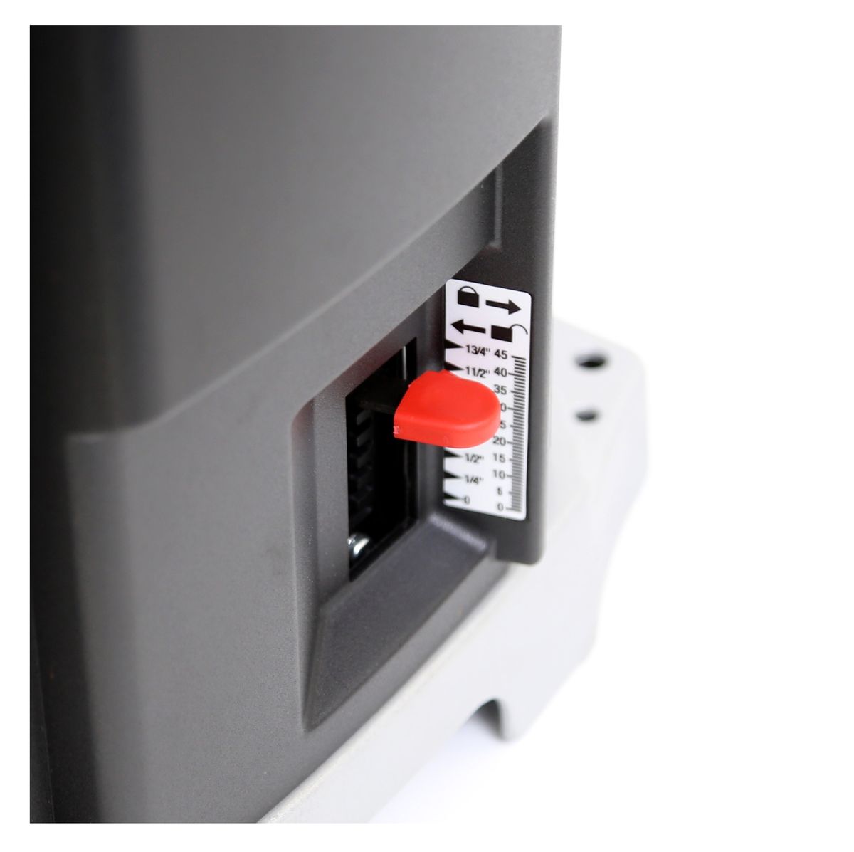 Der Metabo DH 330 Dickenhobel leistet durch seine 1800 Watt bis zu 3 mm Materialabtrag. Das extrem stabile Getriebe und der starke Motor halten hohe Belastungen aus, somit ist ein konstanter und schneller Werkstückvorschub problemlos möglich. Ein präzises und bequemes Verstellen der Höhe ist durch die Handkurbel möglich, des Weiteren ist eine millimetergenaue Ablesung der abzutragenden Höhe kein Problem. Der Wiederanlaufschutz verhindert ein automatisches Wiedereinschalten nach einem Stromausfall. Auch lange Werkstücke können schnell bearbeitet werden, die ausklappbare Zufuhr und der ausklappbare Abnahmetisch machen dies möglich. Durch das Gewicht von 35 kg verfügt der Dickenhobel über eine enorme Standfestigkeit. Eine integrierte Hobelwerkverriegelung verhindert ein unbeabsichtigtes Verstellen und den dadurch entstehenden Abtrag zuverlässig. Metabo ist ein Hersteller der für höchste Qualitätsansprüche steht, der Dickenhobel DH 330 unterstreicht diese Aussage. Der Dickenhobel ist eine Maschine, die auch als Dickenhobelmaschine bezeichnet wird. In ihr werden z.B. Holzbalken auf die voreingestellte Dicke gehobelt. Es wird eine eben Fläche gehobelt und zeitgleich findet eine Glättung statt.