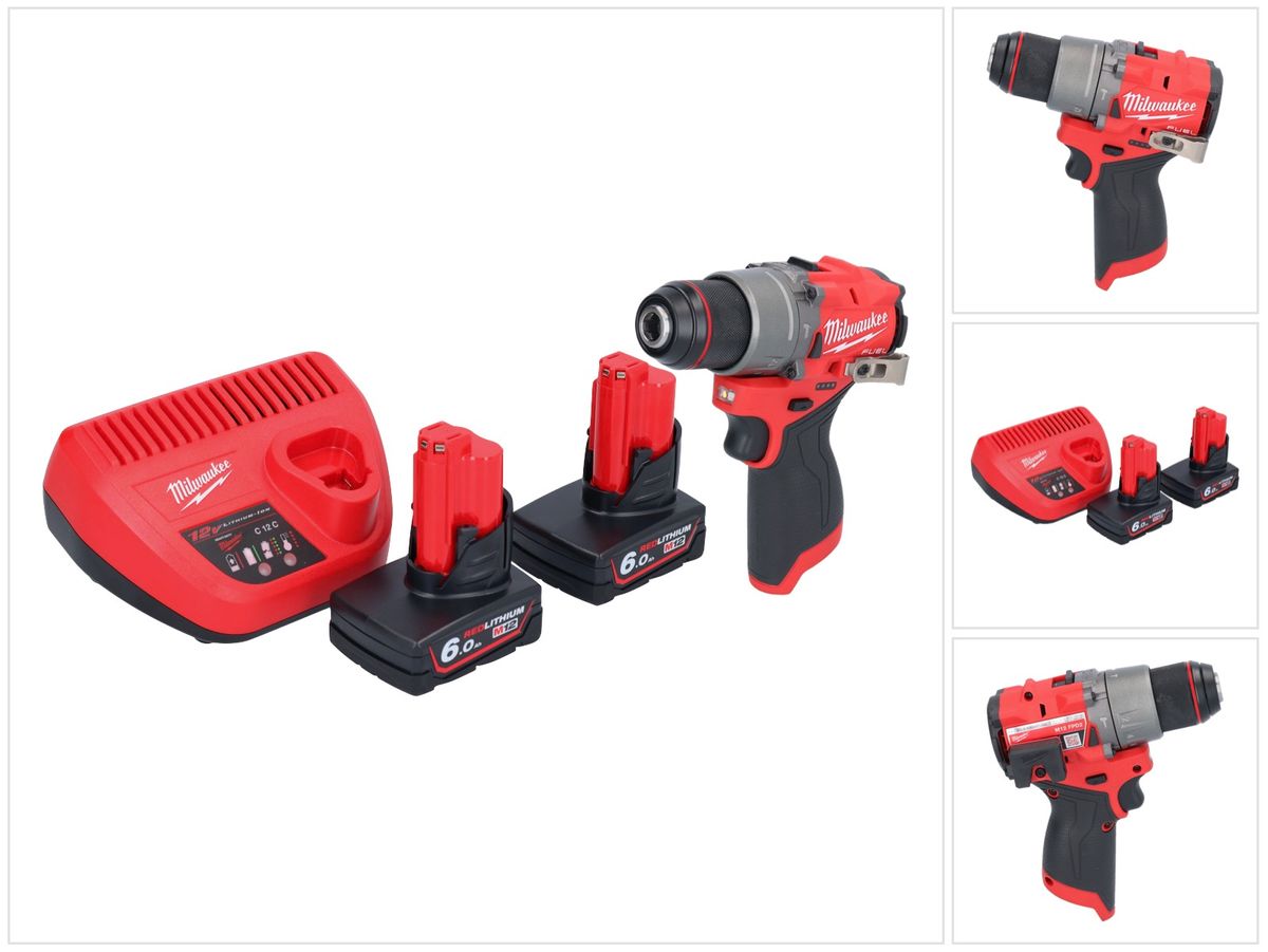 Milwaukee M12 FPD2-602 Akku Schlagbohrschrauber 12 V 45 Nm Brushless + 2x Akku 6,0 Ah + Ladegerät