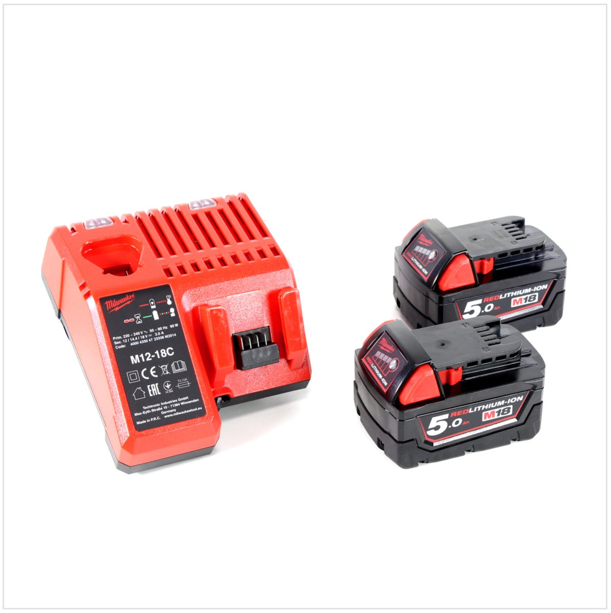 Milwaukee M18 BLID 502 C 18 V Brushless Akku - Schlagschrauber + 2x 5.0 Ah Red Li-Ion Akku + Milwaukee M12-18C Universal Akku Ladegerät + Koffer
