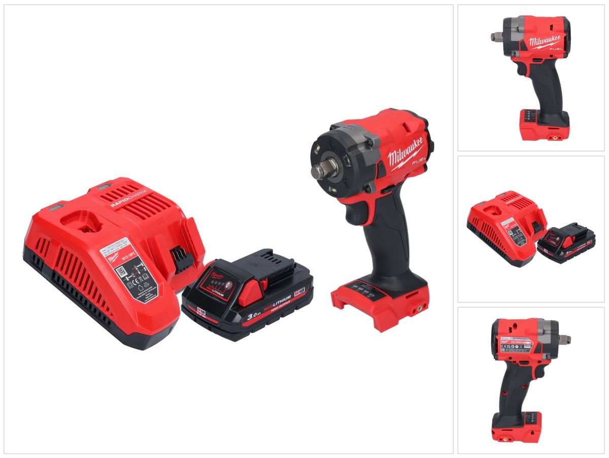 Milwaukee M18 FIW2F12-301 Akku Schlagschrauber 18 V 339 Nm 1/2" Brushless + 1x Akku 3,0 Ah + Ladegerät