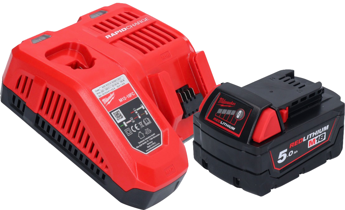 - 1x Milwaukee M18 B5 18 V / 5,0 Ah / 5000 mAh Akku
