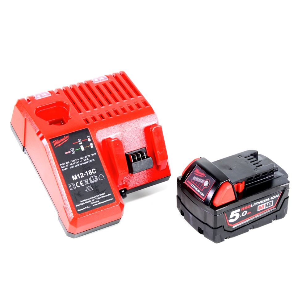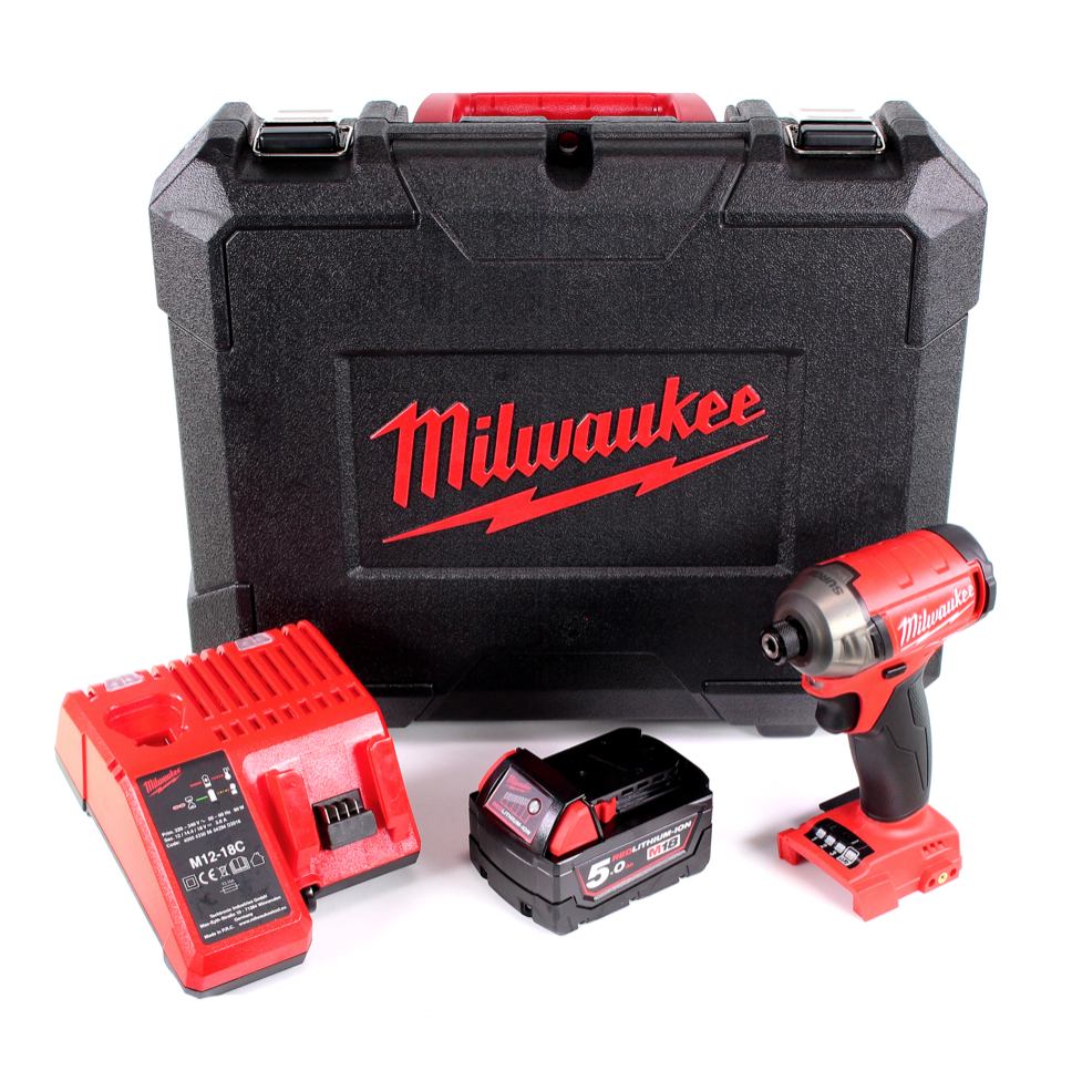 Milwaukee M18 FQID 501C 18 V 1/4" Brushless Li-Ion Akku Schlagschrauber SURGE im Werkzeugkoffer + 1x M18 B5 5,0 Ah Akku + M12-18C Ladegerät