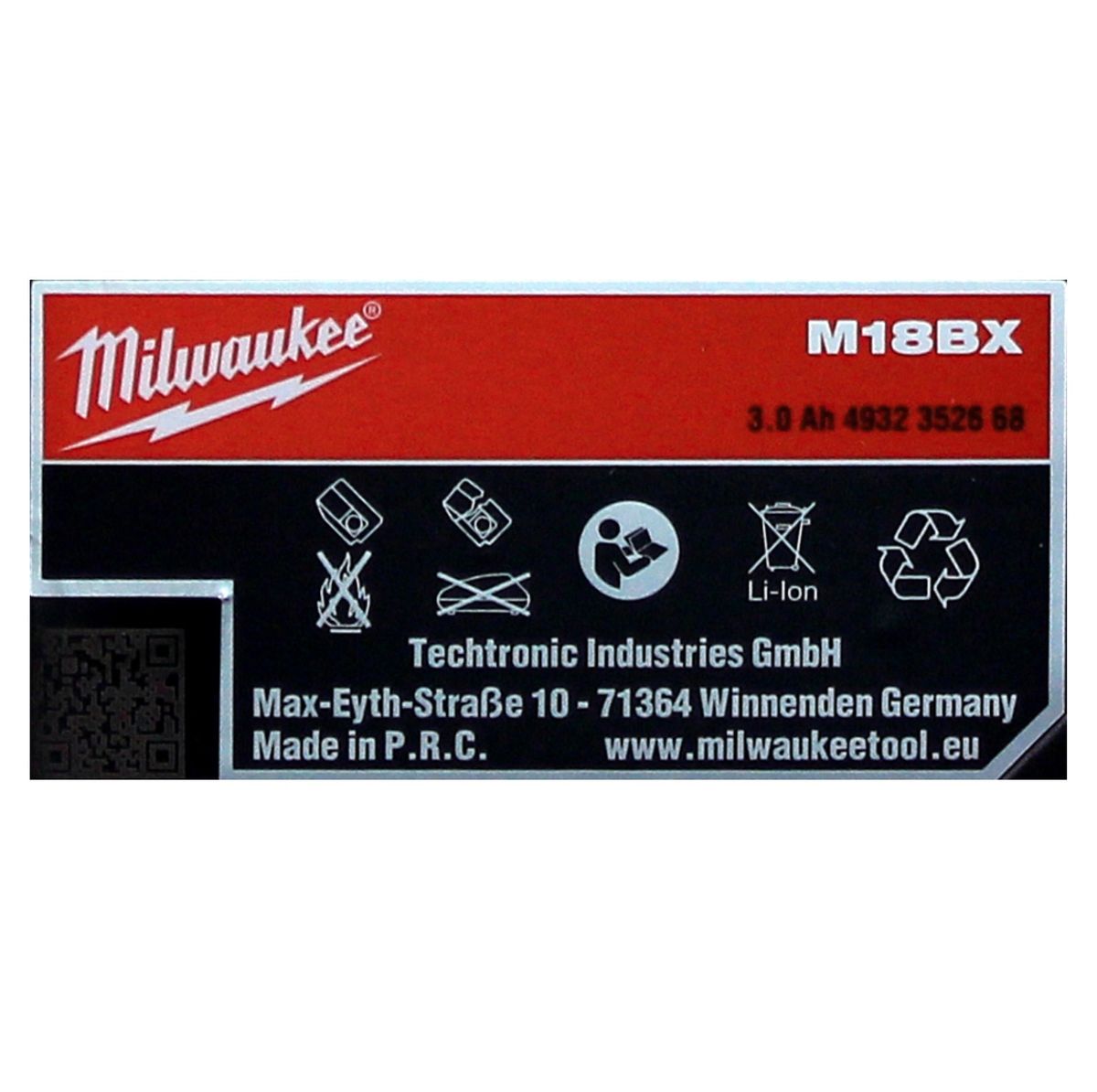 - 1x Milwaukee M18 BX B3 Akku 18V / 3,0Ah / 3000mAh ( 4932352668 )