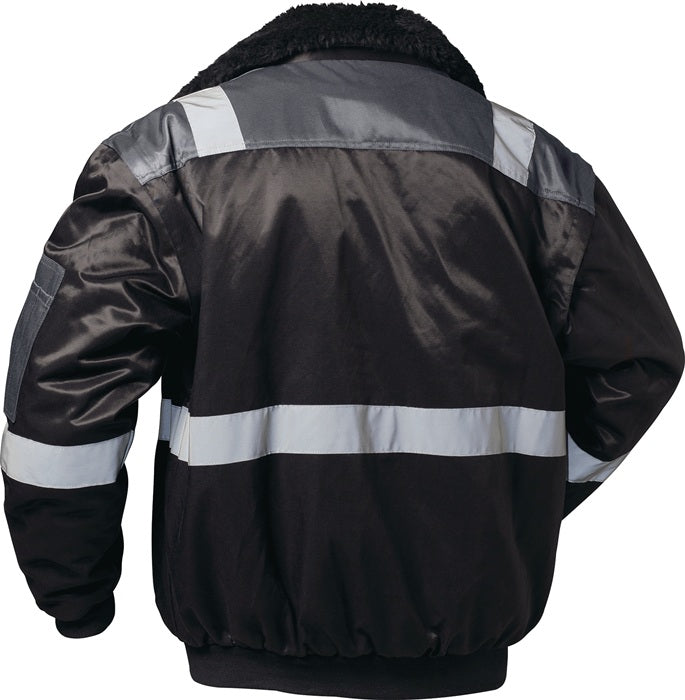 Obermaterial: 60% Baumwolle / 40% Polyester, ca. 250 g/m², Futter: 100% Polyester, Faserpelz: 100% Polyester · Reflexstreifen um Körper, Schulter und Ärmel · innen angenehm zu tragendes Polyester-Futter, außen abriebfestes Baumwoll-Polyester-Mischgewebe · wasserabweisend durch hochwertige Beschichtung · Kragen und Ärmel abnehmbar, Webpelz-Futter herausnehmbar · Beschichtung ermöglicht Reinigung und Maschinenwäsche bei 40 °C
